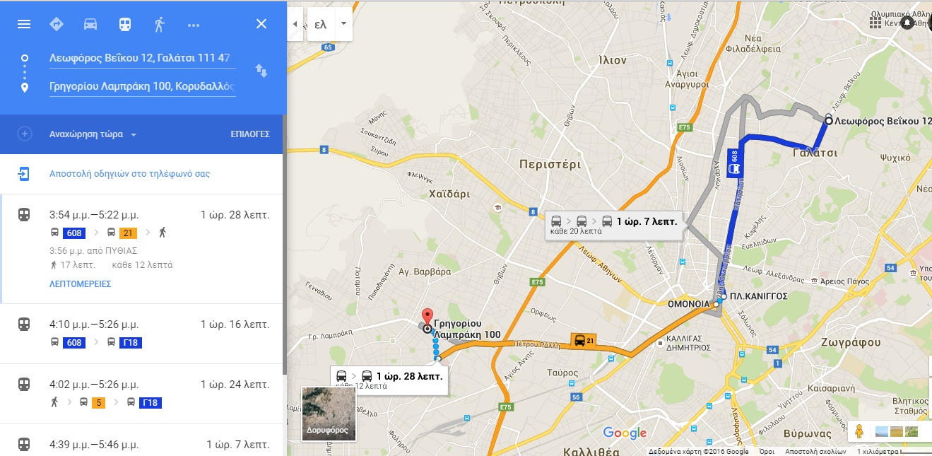 • Κάνοντας αναζήτηση στο Google Transit