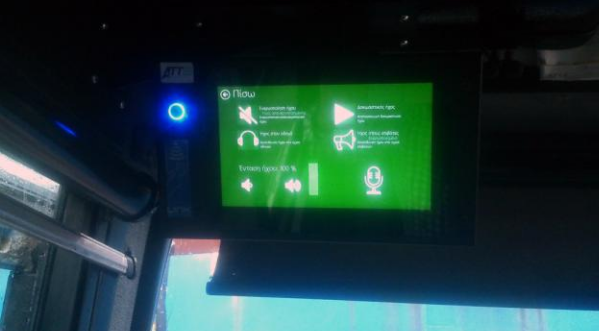 - την οθόνη για την ενημέρωση στάσης καθώς και χρήσιμες πληροφορίες μέσω συνεχούς ενημέρωσης από το Κέντρο Εποπτείας ΟΑΣΑ .