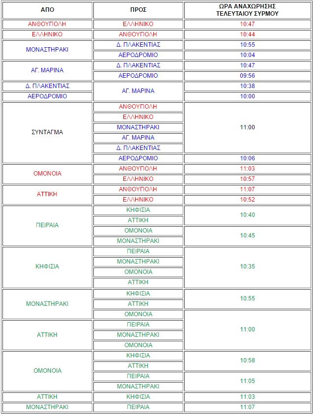 Τα τελευταία δρομολόγια Μετρό και ΗΣΑΠ πριν από τη στάση εργασίας: