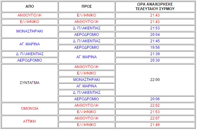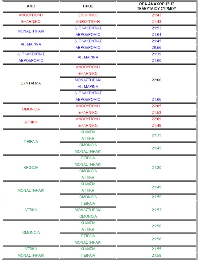 Τα τελευταία δρομολόγια Μετρό και ΗΣΑΠ την Παρασκευή 10 Ιουνίου: