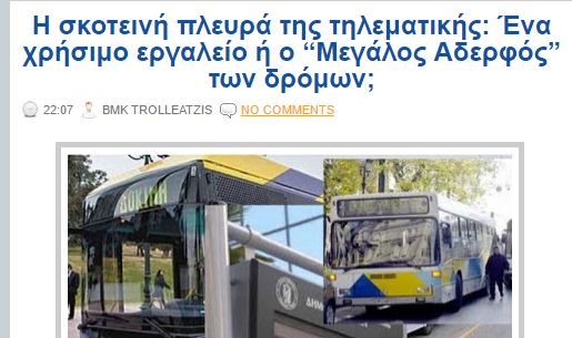 Όπως πάντως έχουμε αναφέρει στο παρελθόν μέσα από αυτό το blog (Φιάσκο η έναρξη λειτουργίας της τηλεματικής των λεωφορείων), η ημερομηνία παράδοσης της τηλεματικής (21 Μαρτίου) ήταν προφανώς εικονική καθώς την ημέρα εκείνη, και για πολλές ακόμα εβδομάδες, δεκάδες γραμμές λεωφορείων δεν είχαν ακόμα προστεθεί στο σύστημα της τηλεματικής και δεκάδες «έξυπνες στάσεις» βρισκόταν εκτός λειτουργίας. Επίσης, δεν λειτουργούσε ακόμα η ιστοσελίδα telematics.oasa.gr και δεν είχαν κυκλοφορήσει οι εφαρμογές της τηλεματικής για κινητά τηλέφωνα.