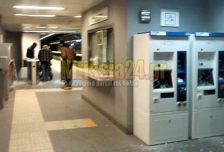 Νέα επίθεση κουκουλοφόρων σε σταθμό του ΗΣΑΠ σημειώθηκε το βράδυ της Παρασκευής. Ομάδα 10 κουκουλοφόρων επιτέθηκαν στον σταθμό ΚΑΤ λίγο μετά τις 20:00 το βράδυ προξενώντας ζημιές με βαριοπούλες. Οι δράστες έσπασαν τέσσερα καινούρια μηχανήματα έκδοσης εισιτηρίων και οκτώ πύλες εισόδου/εξόδου που θα χρησιμοποιούταν για την λειτουργία του συστήματος του ηλεκτρονικού εισιτηρίου.