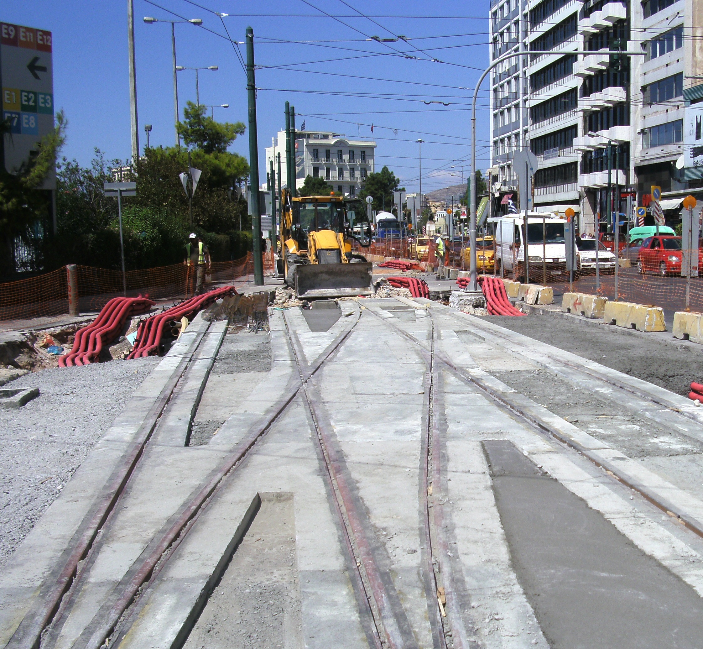 • Στην οδό Βασ. Γεωργίου ολοκληρώθηκαν οι εργασίες κατασκευής τροχιοδρόμου από την οδό Ηρώων Πολυτεχνείου μέχρι τη Φίλωνος. Σε εξέλιξη βρίσκονται οι αρχαιολογικές ανασκαφές στην οδό Φίλωνος, στο πεζοδρόμιο του Τιτάνειου κήπου και στη θέση του νέου Υ/Σ.