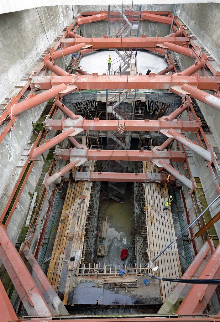 - Φρέαρ εισόδου ΤΒΜ: Σε εξέλιξη βρίσκονται οι εργασίες κατασκευής υδατοστεγάνωσης περιμετρικών τοίχων και πλάκας οροφής +62,86 καθώς και η κατασκευή πλακών +47,46, +56,11, +62,86.