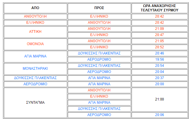 Τα τελευταία δρομολόγια του Μετρό πριν από τη στάση εργασίας: