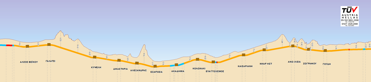 Πρόκειται για το τμήμα από το Άλσος Βεΐκου ως το Γουδή, μήκους 12,8 χιλιομέτρων και με 15 σταθμούς (Άλσος Βεΐκου, Γαλάτσι, Ελικώνος, Κυψέλη, Δικαστήρια, Αλεξάνδρας, Εξάρχεια, Ακαδημία, Κολωνάκι, Ευαγγελισμός, Καισαριανή, Πανεπιστημιούπολη, Ιλίσια, Ζωγράφου, Γουδή)