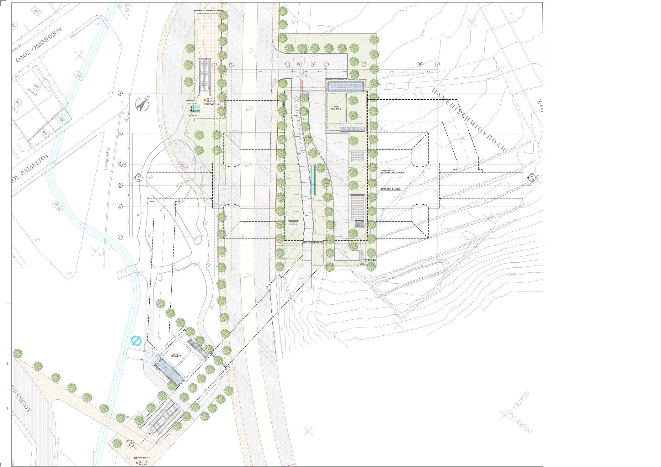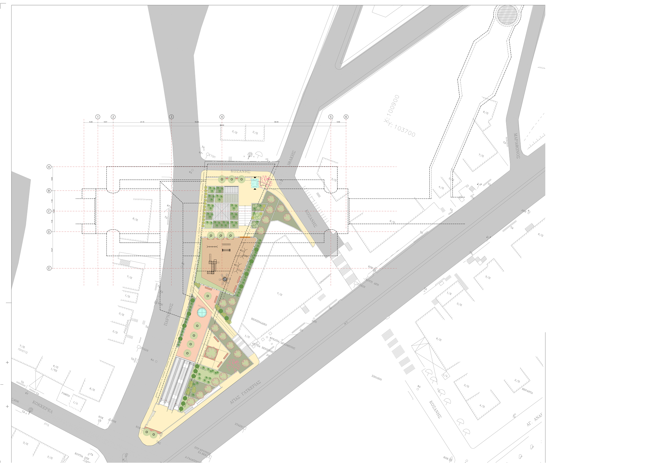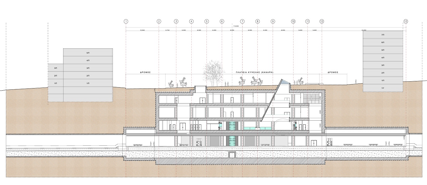 - Δικαστήρια, σε ελεύθερο χώρο στα δυτικά του συγκροτήματος των κτιρίων των δικαστηρίων, στη διασταύρωση Ευελπίδων και Μουστοξύδη. (ΚΑΤΟΨΗ, ΤΟΜΗ 1, ΤΟΜΗ 2)
