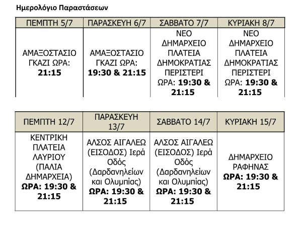 - Παρασκευή 6 Ιουλίου στις 19:30 και στις 21:15