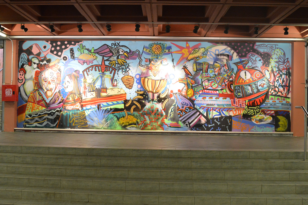 Το street art, άξονας της Συνάντησης, θα επιτρέψει σε Μεξικανούς και Έλληνες καλλιτέχνες να εκφραστούν σε τέσσερις τοίχους του σταθμού του ηλεκτρικού σιδηροδρόμου ΕΙΡΗΝΗ. Η θέση αυτή έχει εξέχουσα συμβολική σημασία όχι μόνο χάρη στο όνομά της, αλλά και γιατί αποτελεί τον σταθμό πρόσβασης στο Ολυμπιακό Στάδιο Αθηνών, ο οποίος χτίστηκε για να συγκεντρώσει διαφορετικά έθνη ώστε να γιορτάσουν τις κοινές τους αξίες φιλίας και ομόνοιας.