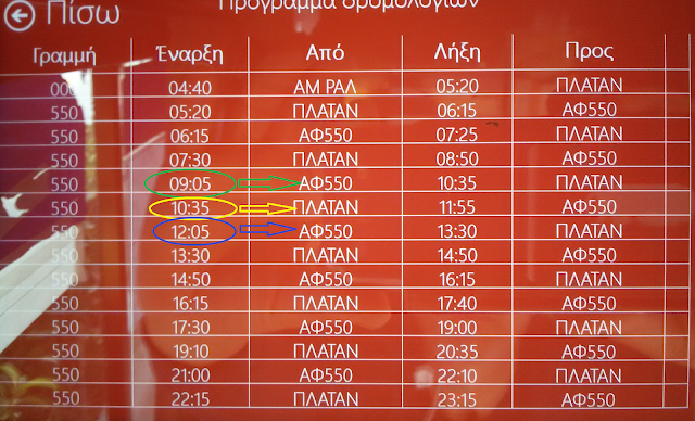 Χαρακτηριστική είναι η εικόνα που δημοσιεύεται στο citybus-drivers.blogspot.com με τα δρομολόγια ενός λεωφορείου της γραμμής 550 Π. Φάληρο – Κηφισιά, όπως εμφανίζονται στην οθόνη του οδηγού.