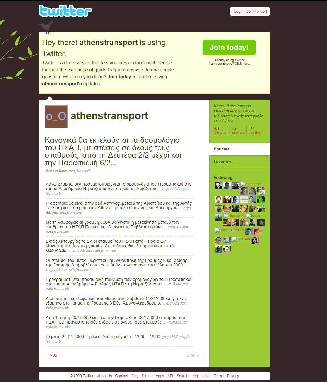 To tweet αφορούσε μία στάση εργασίας (ξαφνιάζεται κανείς;) στα Τρόλεϊ που θα πραγματοποιούνταν εκείνη τη μέρα. Τα υπόλοιπα tweets της μέρας (βλ. παρακάτω) αφορούσαν τα επερχόμενα έργα του ΗΣΑΠ, το κλείσιμο του τμήματος Πλακεντίας – Εθν. Άμυνα του Μετρό για ένα εξάμηνο, καθώς και την είδηση πως οι σταθμοί Περιστέρι, Ανθούπολη και Χαϊδάρι (Αγία Μαρίνα) θα παραδοθούν στα τέλη του 2009. Τελικά άνοιξαν το 2013 λόγω του σκανδάλου της Siemens.