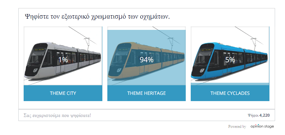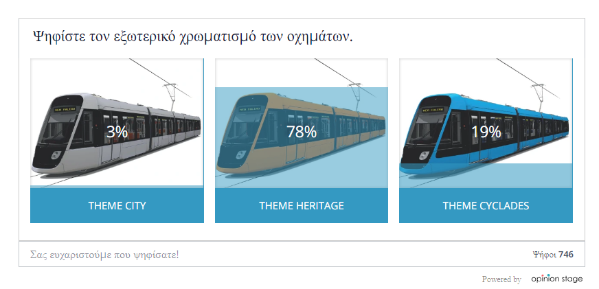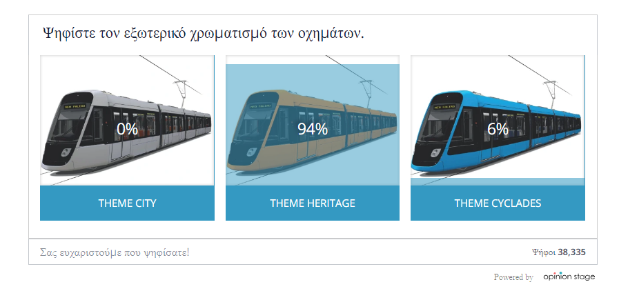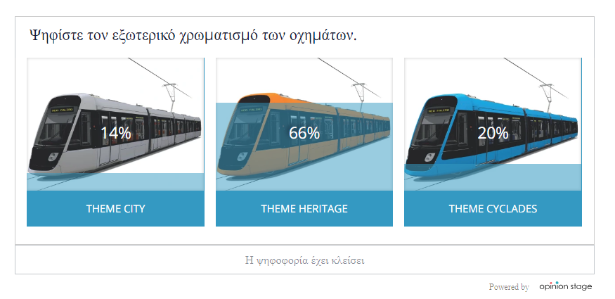 Μυστήρια τροπή πήρε η online ψηφοφορία της Αττικό Μετρό για την επιλογή του χρώματος που θα φέρουν στο εξωτερικό τους οι νέοι συρμοί του Τραμ της Αθήνας.