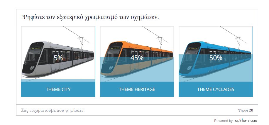 Για την ψηφοφορία, η Αττικό Μετρό χρησιμοποιεί widget της Οpinion Stage η χρέωση του οποίου εξαρτάται από τoν αριθμό των view που δέχεται η ψηφοφορία.