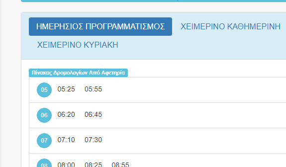 [Αν και η καρτέλα ‘ημερήσιος προγραμματισμός’ αποτελεί προεπιλογή, ίσως θα μπορούσε με κάποιο τρόπο να εξηγηθεί στον επισκέπτη της σελίδας ότι εκεί πρέπει να κοιτάξει για να δει τα πραγματικά σημερινά δρομολόγια και όχι στις διπλανές καρτέλες.]