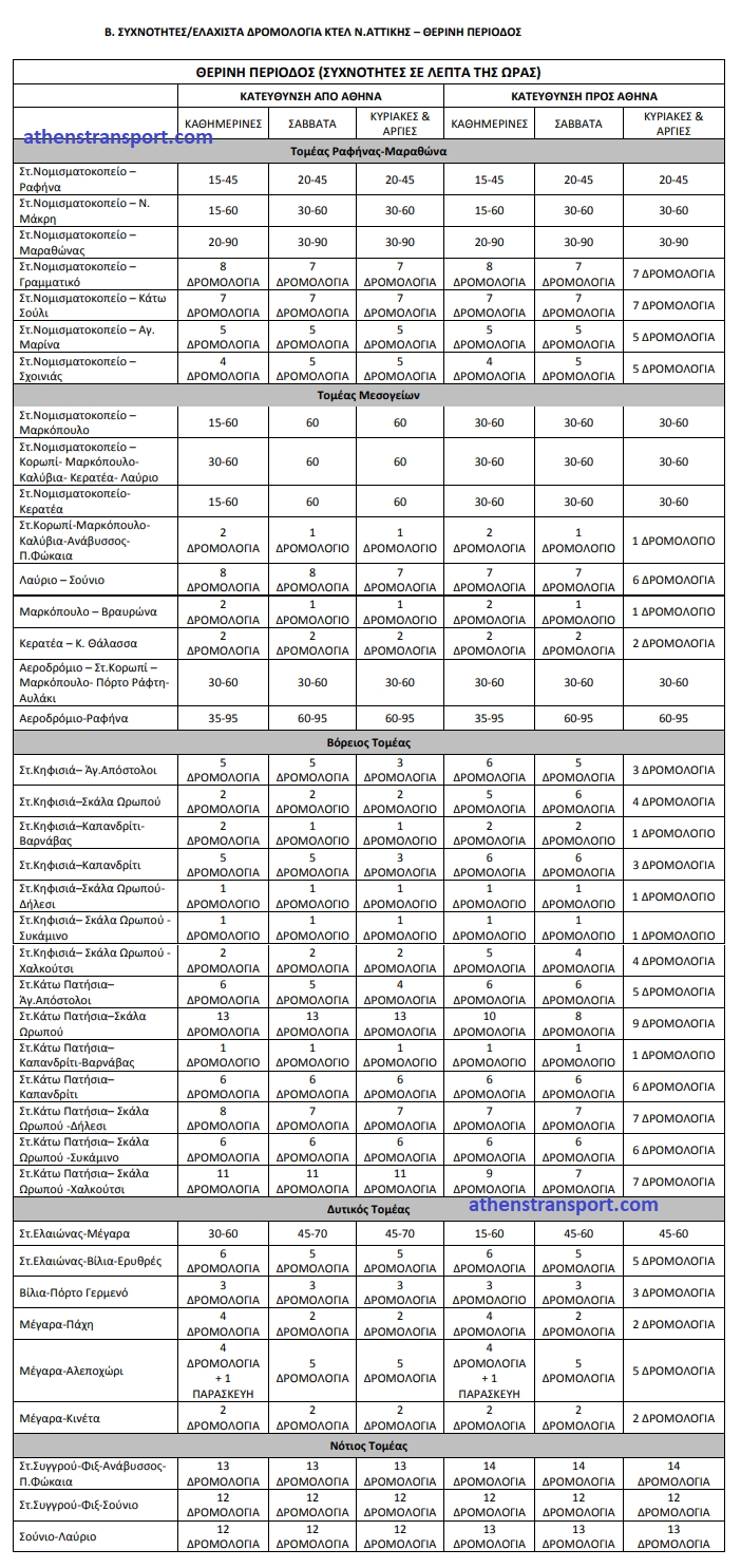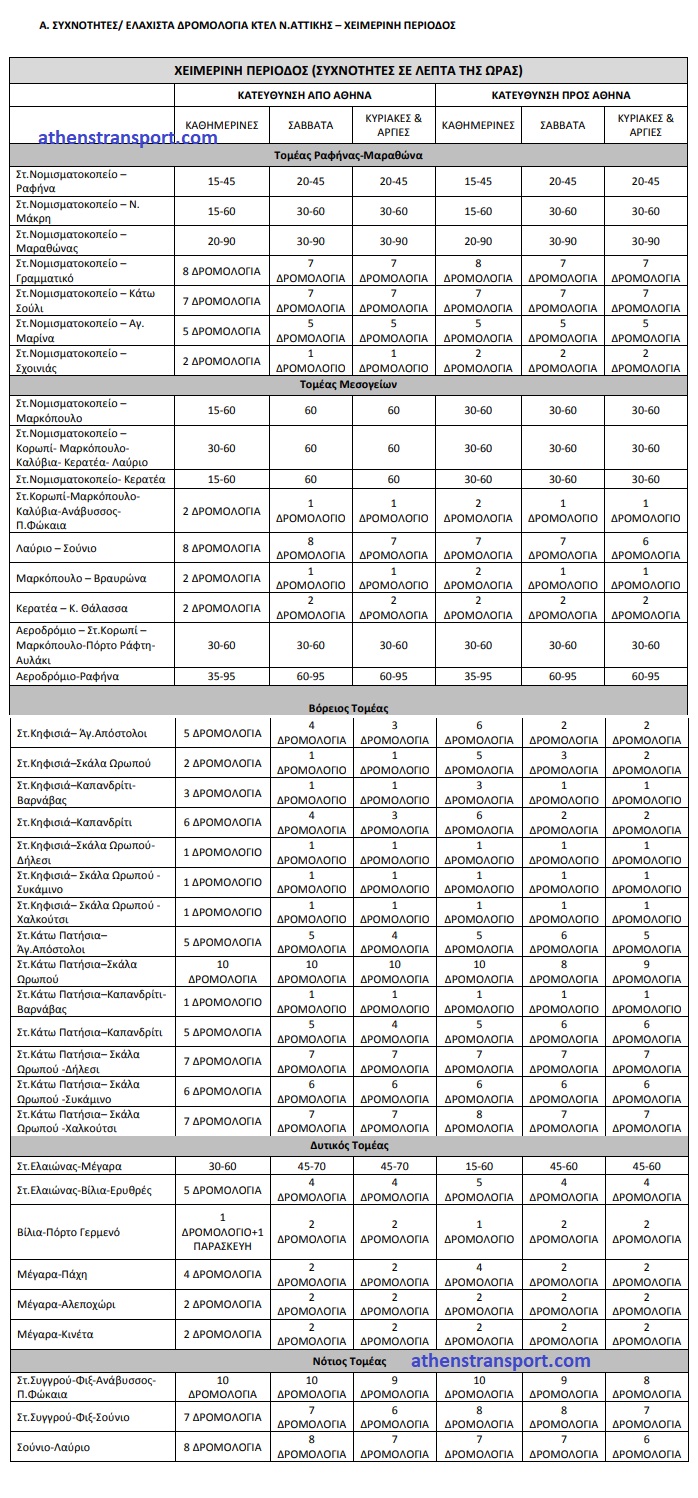 Ακολουθούν οι προβλεπόμενες συχνότητες των δρομολογίων για την χειμερινή και τη θερινή περίοδο: