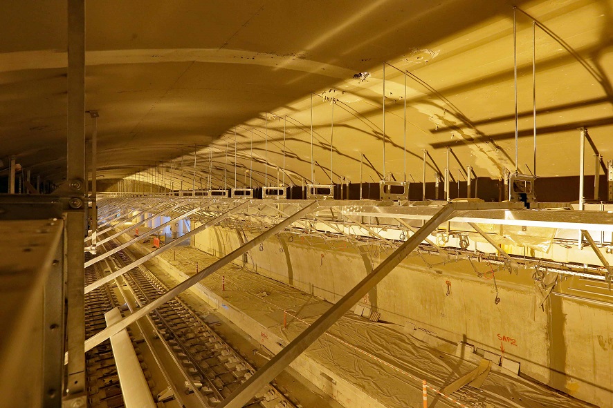 Στα Υπόγεια Τμήματα ΝΑΤΜ του σταθμού (ΝΑΤΜ), σε εξέλιξη βρίσκονται οι εργασίες μόνιμης επένδυσης ΝΔ σήραγγας πρόσβασης και κάτω εγκάρσιας σήραγγας δυτικού ανελκυστήρα.