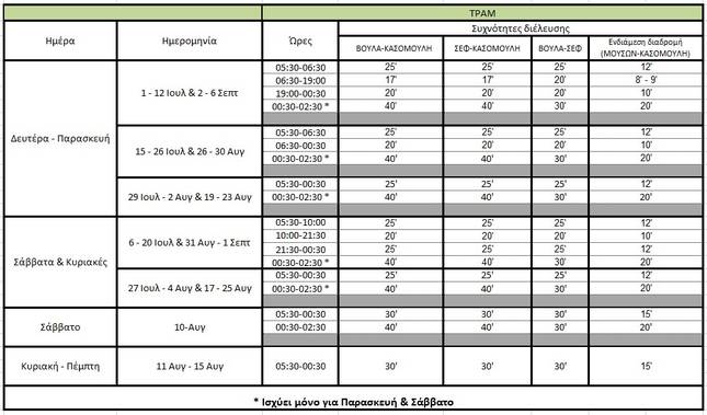 Τα θερινά δρομολόγια του Τραμ ισχύουν από τη Δευτέρα 1 Ιουλίου έως και την Παρασκευή 6 Σεπτεμβρίου 2019: