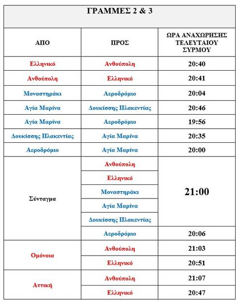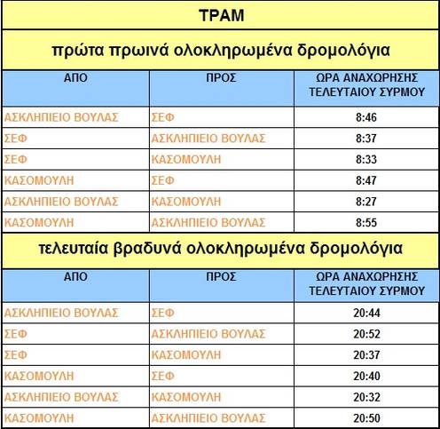 Το Μετρό (γραμμές 2 και 3) θα κινείται μεταξύ 9:00 – 21:00 ενώ το Τραμ μεταξύ 8:00 – 22:00. Η αποκατάσταση των δρομολογίων του Τραμ αναμένεται ως τις 9:30 π.μ. ενώ οι συρμοί θα αρχίσουν να αποσύρονται από τις 20:30.