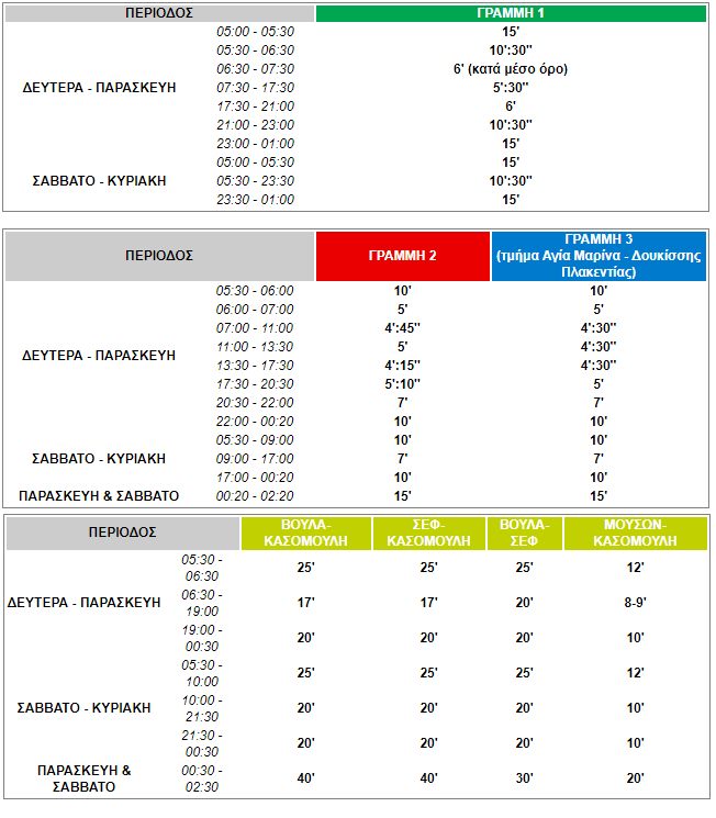 Συγκρίνοντας τους πίνακες με τις συχνότητες δρομολογίων των μέσων της ΣΤΑΣΥ παρατηρούμε πως στα χαρτιά υφίστανται μικρές αυξομειώσεις σε σχέση με πέρυσι.