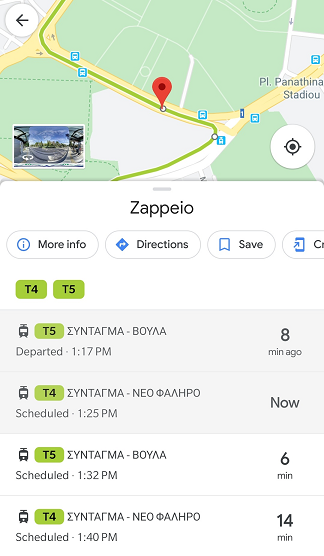 Τέλος ας δούμε ένα διαφορετικό μέσο. Όσοι βρίσκονται πλησίον του Ζαππείου μπορούν να ενημερωθούν για την ώρα διέλευσης του επόμενου δρομολογίου Τραμ από την στάση. Το πρόβλημα όμως είναι πως το Τραμ δεν θα περάσει ποτέ. Στο τμήμα Σύνταγμα – Κασομούλη δεν πραγματοποιούνται δρομολόγια από πέρυσι το φθινόπωρο.