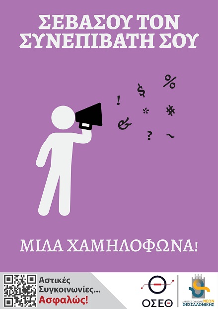 Δώδεκα πρωτότυπες αφίσες, με ισάριθμα κοινωνικά και χρηστικής φύσεως μηνύματα για τη σωστή συμπεριφορά του επιβατικού κοινού μέσα και έξω από τα ΜΜΜ, έχουν αναρτηθεί από την περασμένη εβδομάδα, στα λεωφορεία του ΟΑΣΘ και των παρόχων συγκοινωνίας τεσσάρων ΚΤΕΛ που κυκλοφορούν στη Θεσσαλονίκη.