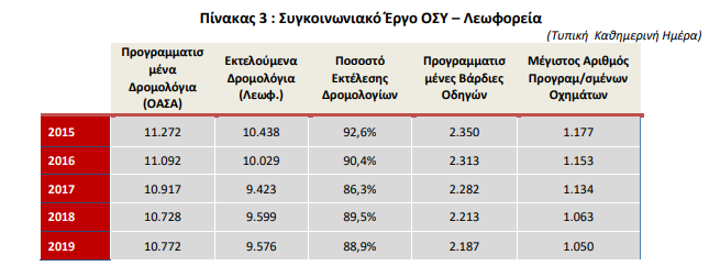 Ανάλογη ήταν η πορεία που ακολούθησαν οι προγραμματισμένες βάρδιες οδηγών (από 2.350 σε 2.187), τα εκτελεσθέντα δρομολόγια (από 10.438 σε 9.576) και το ποσοστό εκτελεσθέντων δρομολογίων (από 92,6% σε 88,9%).