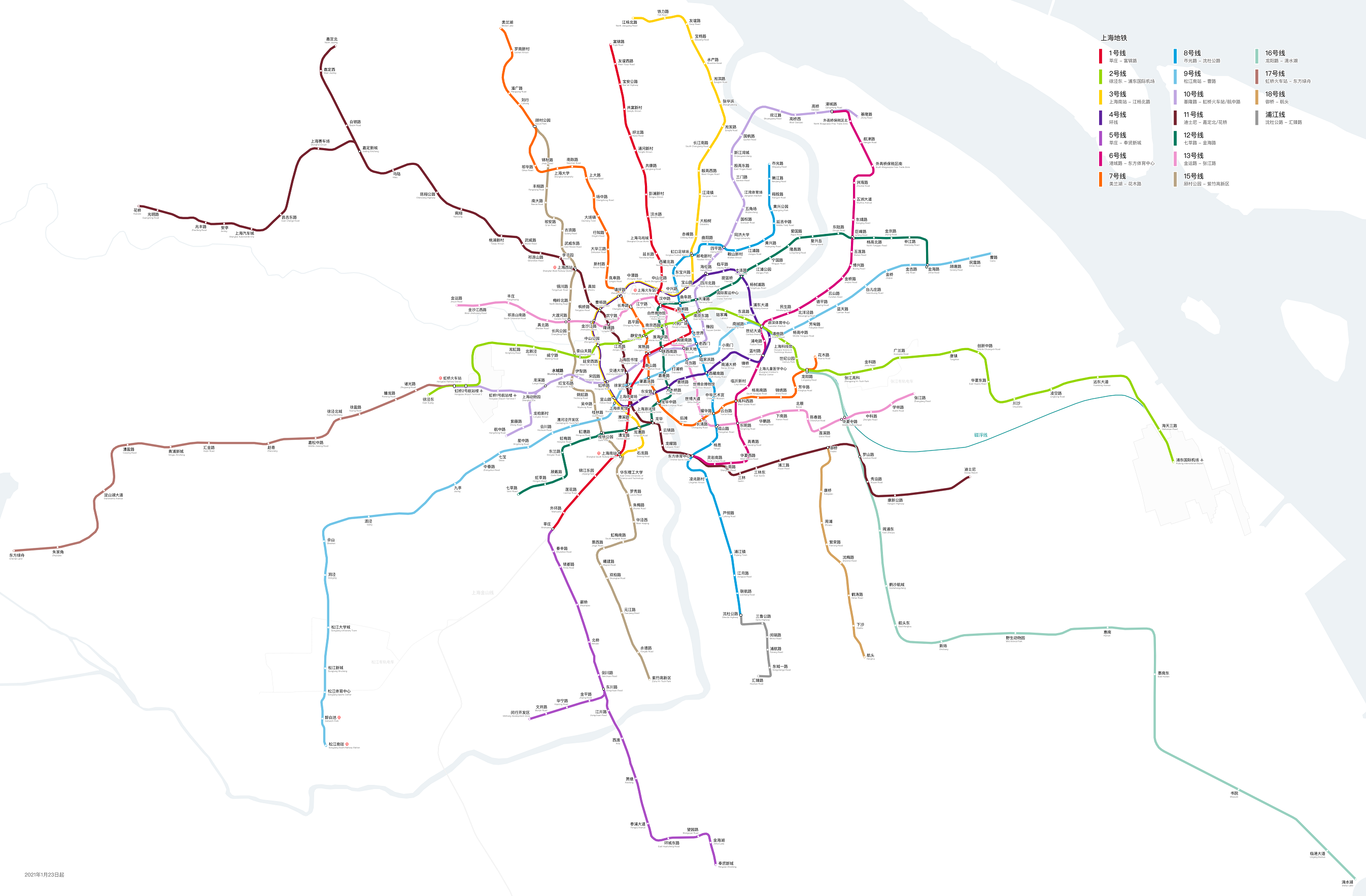 Πλέον, το Μετρό της Σαγκάης έχει συνολικό μήκος 743 χλμ και διαθέτει 381 σταθμούς, αν και οι αριθμοί αυτοί διαφέρουν ανάλογα με την πηγή. Σύμφωνα με το δήμαρχο της πόλης μέσα στο 2021 θα ξεκινήσει η κατασκευή 6 επιπλέον γραμμών.