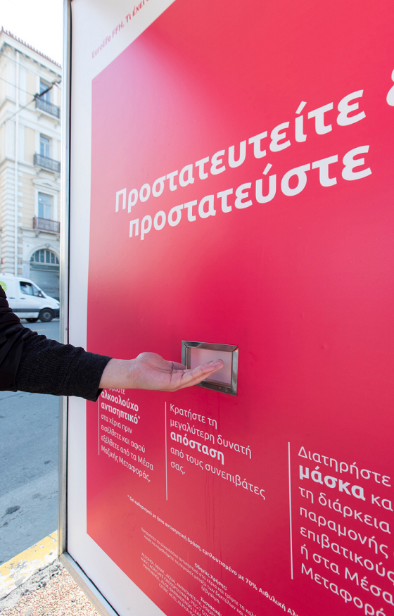 Από το κέντρο της Αθήνας, μέχρι τα βόρεια και τα νότια προάστια, όλοι οι πολίτες που χρειάζεται, αυτήν την περίοδο, να χρησιμοποιούν τα μέσα μαζικής μεταφοράς για τις καθημερινές μετακινήσεις τους, θα μπορούν εύκολα να απολυμαίνουν τα χέρια τους.