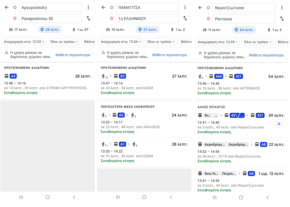 Αν και στο παρελθόν έχουμε αναφερθεί σε προβλήματα που έχουμε συναντήσει σε εφαρμογές εύρεσης διαδρομής (πολλά από τα οποία οφείλονται στο γεγονός ότι οι συγκοινωνίες της Αθήνας δεν τους παρέχουν πάντα επικαιροποιημένα δεδομένα) είναι η πρώτη φορά που βλέπουμε τα μέσα της ΣΤΑΣΥ να έχουν εξαφανιστεί εντελώς από την πιο δημοφιλή εφαρμογή για μετακινήσεις. Το πρόβλημα αυτό δεν υπάρχει σε άλλες παρόμοιες εφαρμογές, όπως το Moovit.