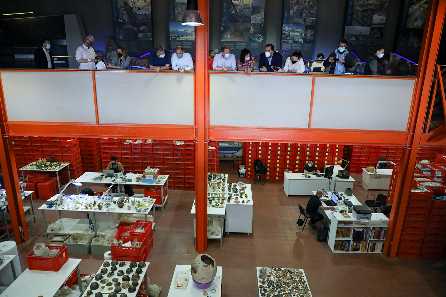 Η κ. Χρυσουλάκη, ξεναγώντας τον κ. Καραμανλή στην έκθεση των αρχαίων που βρέθηκαν κατά την κατασκευή του Μετρό, σημείωσε μεταξύ άλλων ότι: «Θα αναπαραστήσουμε μία στιγμή μέσα στο χρόνο της καθημερινότητας των Πειραιωτών».