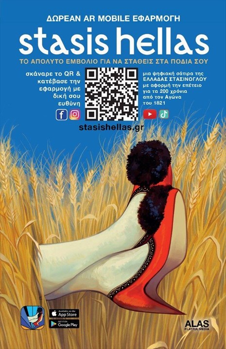 Από το Σάββατο 25 Οκτωβρίου και για 15 ημέρες όσοι βρεθούν μπροστά σε 21 στάσεις λεωφορείων της πρωτεύουσας, από το Παγκράτι μέχρι την Καλλιθέα και από την Κυψέλη μέχρι το Ελληνικό, θα μπορούν να  κατεβάσουν δωρεάν στα κινητά τους την σατιρική εφαρμογή της Ελλάδας Στασινόγλου «stasis hellas» και να μπουν κυριολεκτικά μέσα σε μια νέα πραγματικότητα.