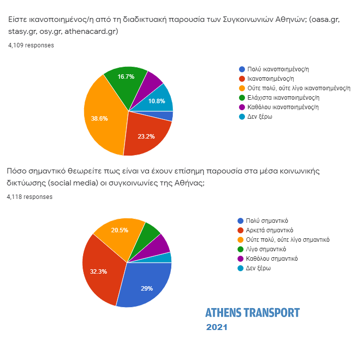 Το 38,67% δηλώνουν ούτε πολύ ούτε λίγο ικανοποιημένοι από τη διαδικτυακή παρουσία των συγκοινωνιακών φορέων (oasa.gr, stasy.gr, osy.gr, athenacard.gr). Το 26,9% δηλώνουν αρκετά ή πολύ ικανοποιημένοι και το 23,8% δηλώνουν ελάχιστα ή καθόλου ικανοποιημένοι.
