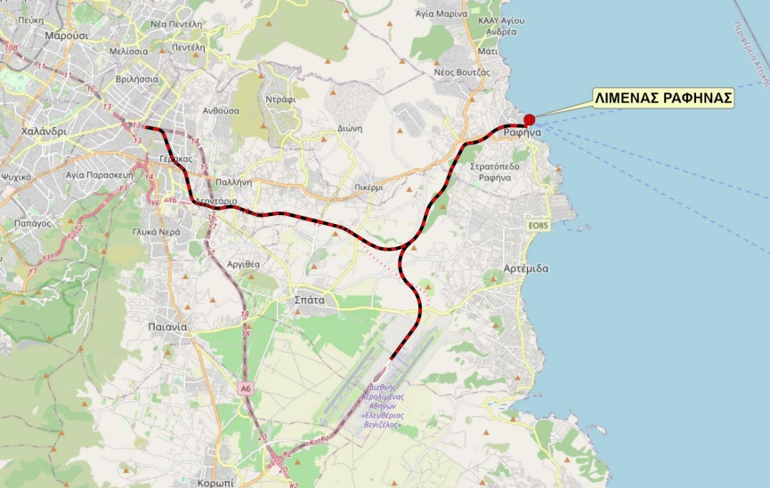 - Καατασκευή 12,5 χλμ εξ ολοκλήρου νέας σιδηροδρομικής γραμμής επί έρματος, ως επέκταση της υφιστάμενης γραμμής από τον τερματικό Σιδηροδρομικό Σταθμό στο Αεροδρόμιο Ελ. Βενιζέλος, μέχρι τον Λιμένα Ραφήνας, όπου προβλέπεται η κατασκευή νέου υπόγειου τερματικού Σιδηροδρομικού Σταθμού στο Λιμένα Ραφήνας, ο οποίος θα εξυπηρετείται με οριζόντια πρόσβαση (συνεπίπεδη) από τον συγκεκριμένο σταθμό. Η νέα γραμμή προβλέπεται διπλή σε μήκος 10,5 χλμ και μονή σε μήκος 2 χλμ (τερματικό τμήμα Ραφήνας, περιοχή σήραγγας Ραφήνας) και περιλαμβάνει 5 χλμ. περίπου υπόγειου έργου.
