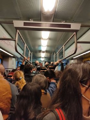Στις φωτογραφίες που μας απέστειλε αναγνώστης του Athens Transport φαίνεται να επικρατούν σκηνές συνωστισμού στο εσωτερικό του συρμού, αφού ένα railbus με δύο βαγόνια αντικατέστησε συρμό Desiro με 5 βαγόνια.
