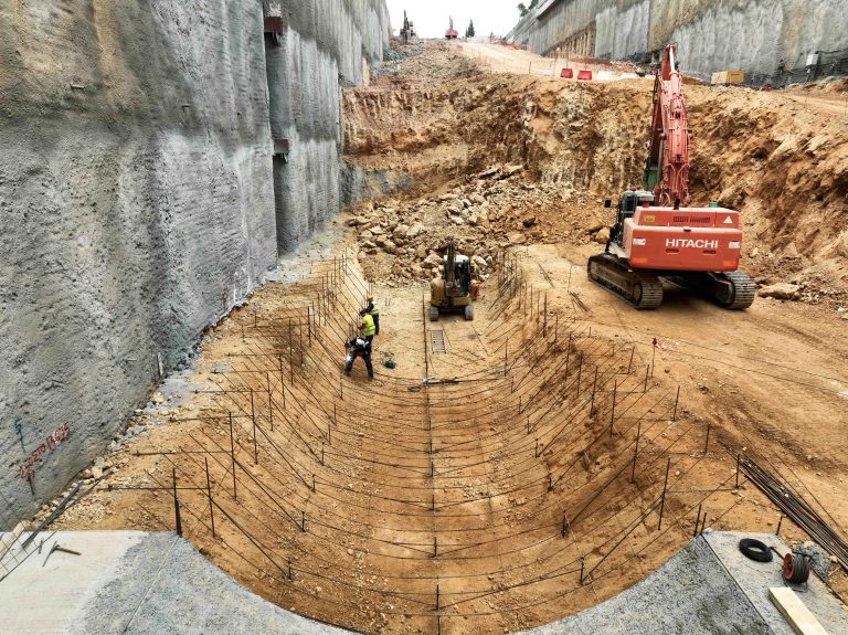 Σταθμός Δικαστήρια: Στον σταθμό Δικαστήρια κατασκευάζονται τα αγκύρια του 1ου επιπέδου εκσκαφής και η πρόοδος κατασκευής κεφαλόδεσμου του κυρίως ορύγματος έχει φτάσει το 93,7%.