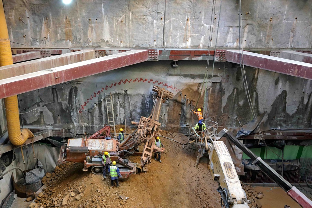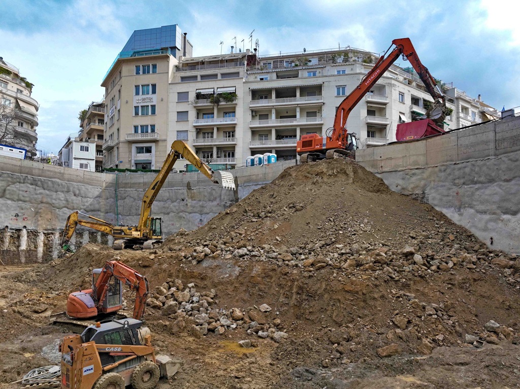 Σταθμός Κολωνάκι: Στον σταθμό Κολωνάκι πραγματοποιείται η εκσκαφή του 3ου επιπέδου και είναι σε εξέλιξη οι διαδικασίες για τη διάτρηση της 3ης σειράς αγκυρίων.