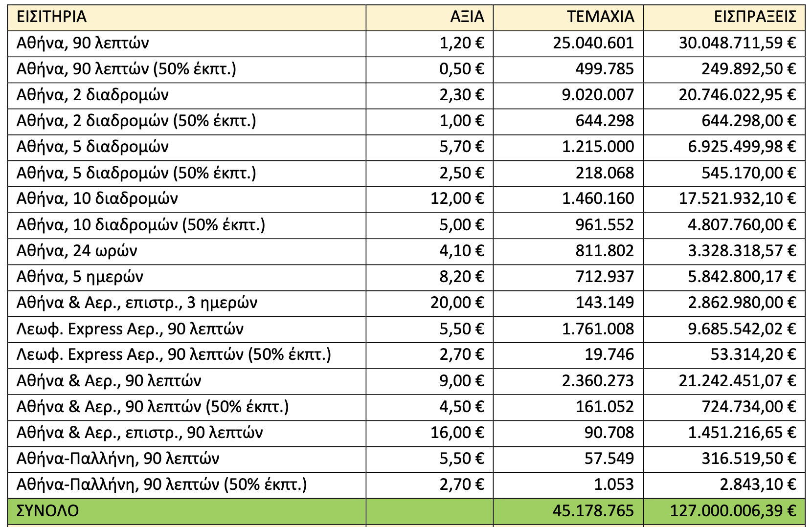 Τζίρος κάτω του 1 εκατ. ευρώ προήλθε κυρίως από διάφορα μειωμένα εισιτήρια, αλλά και από τα εισιτήρια για μετακινήσεις προς το σταθμό της Παλλήνης.