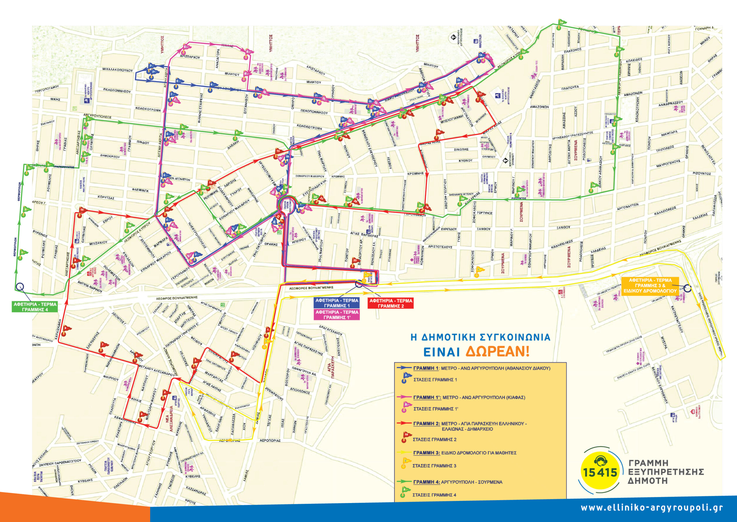 Πληροφορίες για τα δρομολόγια υπάρχουν στην ιστοσελίδα του Δήμου Ελληνικού – Αργυρούπολης