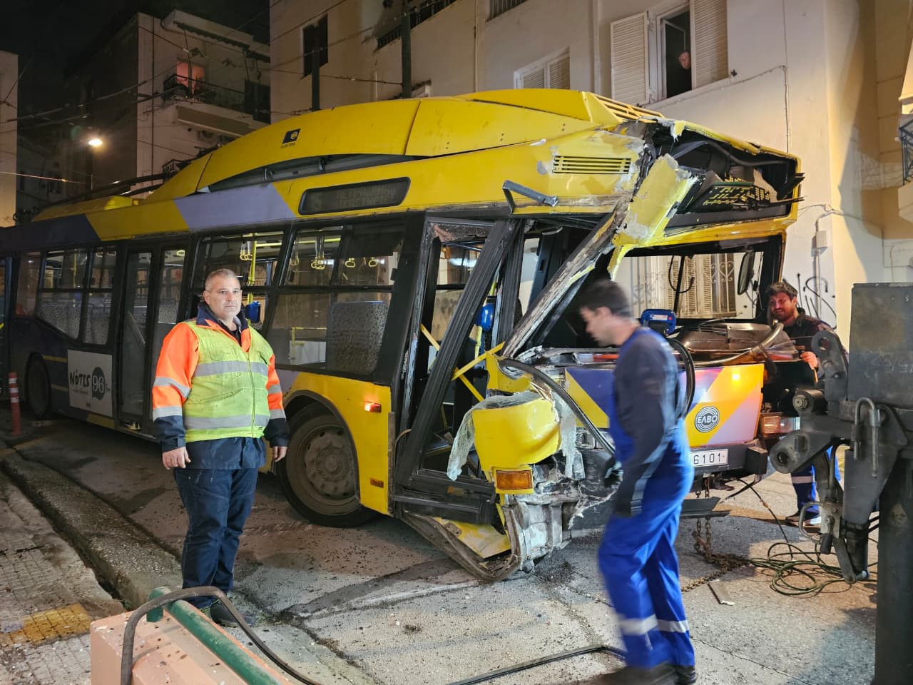 Όπως δείχνουν εικόνες από το σημείο, το τρόλεϊ υπέστη σοβαρές υλικές ζημιές.